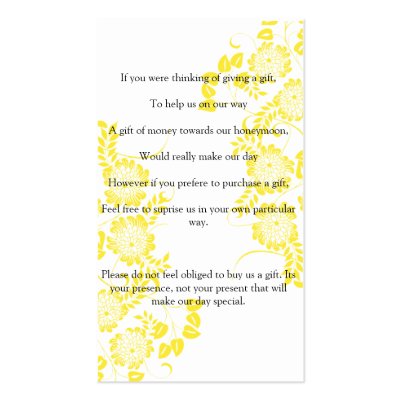 Wedding Ask For Gift Of Money Business Card At Zazzle Ca.